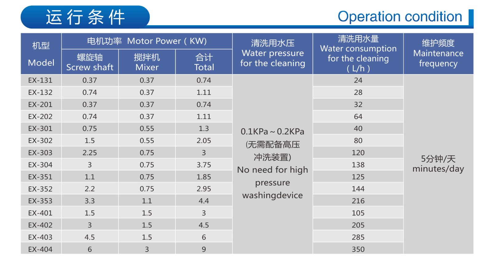 易损品更换时间是个大概数值,在实际运行过程中,污泥的种类、处理的方式、运行调整情况以及每天的运行时间,都会影响易损件的更换周期。(易损件的更换周期以365天/年,8小时/天的运行时间来计算的。)